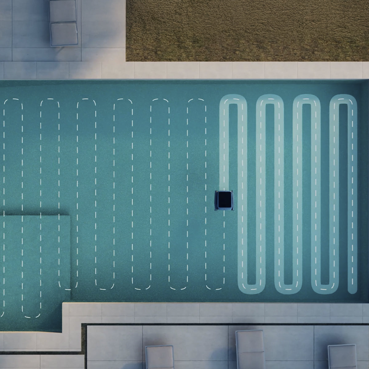 Built-in 20 sensors analyze the environment, helping the robot avoid collisions and clean even tricky areas like corners and pool borders. Seven powerful motors are responsible for smooth movement, while the intelligent route ensures that the entire surface is covered evenly so that no area is left unattended.