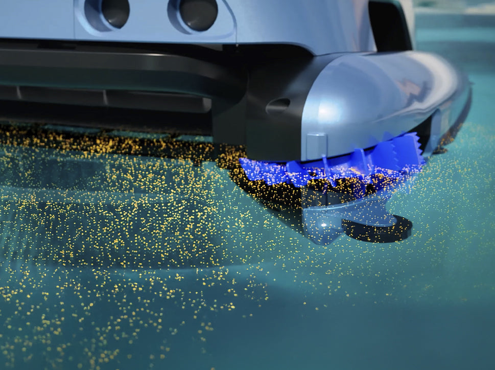 Not all debris can be seen at once - pollen, grit and other small contaminants settle on the surface of the water and gradually sink down. The two side brushes help to collect even these particles by directing them into the filter. As a result, the water stays clean even during the blooming season or in windy conditions.