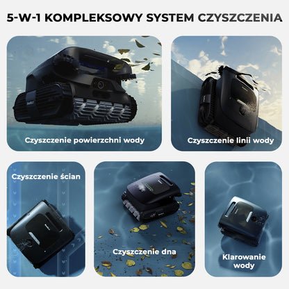 - 5 w 1 czyszczenie: powierzchnia wody, linia wodna, podłoga, ściany, klarowanie wody