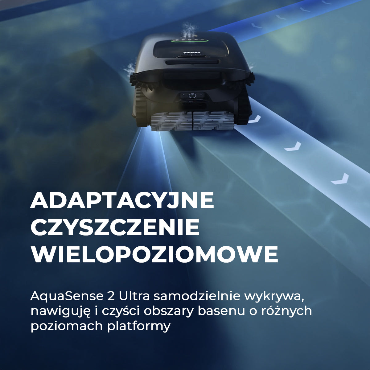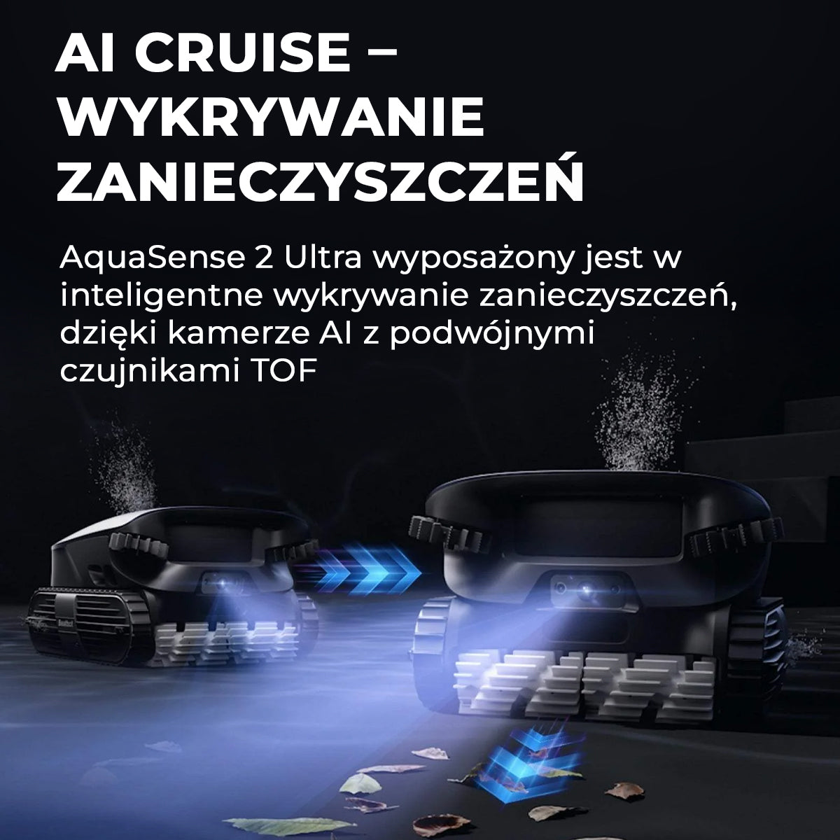 Dzięki zaawansowanym czujnikom i algorytmom AI Cruise, AquaSense 2 Ultra wykrywa, gdzie jest najwięcej zanieczyszczeń i tam się udaje. Rozpoznaje nie tylko duże zanieczyszczenia, ale także drobne cząsteczki, które mogą sprawić, że woda stanie się mętna. Robot nie marnuje energii na przypadkowe ruchy, ale koncentruje się na brudnych miejscach, dzięki czemu czyszczenie jest bardziej wydajne i szybsze.