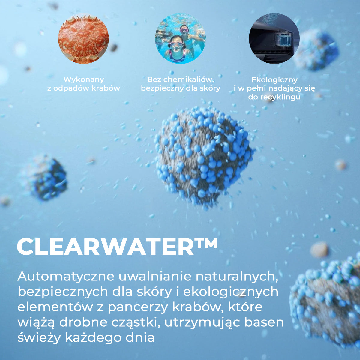 Dzięki technologii ClearWater AquaSense 2 Ultra nie tylko usuwa zanieczyszczenia, ale także poprawia jakość wody. Filtracja odbywa się naturalnie, bez użycia środków chemicznych. Dzięki takiemu podejściu robot będzie szczególnie przydatny dla rodzin z dziećmi lub osób o wrażliwej skórze, dla których ważne jest zminimalizowanie kontaktu z agresywnymi produktami.